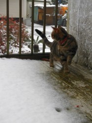 しかし、ベランダに出ることを覚えた今年は、お母んに「出たいにぁ。出してにゃ。」とせがんで出してもらいました。