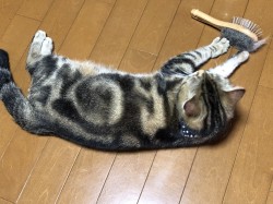 ですから、この時期は朝食後の部屋掃除が終わるとニャンコのブラッシングの時間なのです。