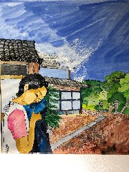次は、旦那様が字がお上手なので、真愛の絵に旦那様の字で作品を作ろうと考えました。