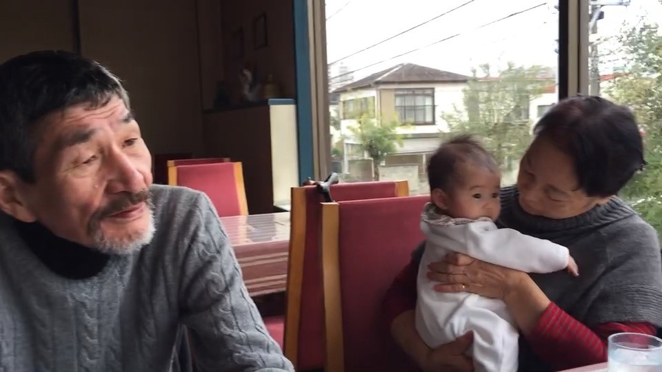 なくなる一年前・初孫をあやしている真愛と息子と話す厚洋さん。