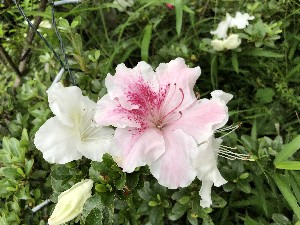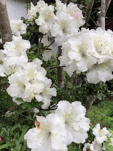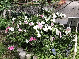 直径1メートル以上ある。一本の枝から赤・ピンク・白の花が咲いている。