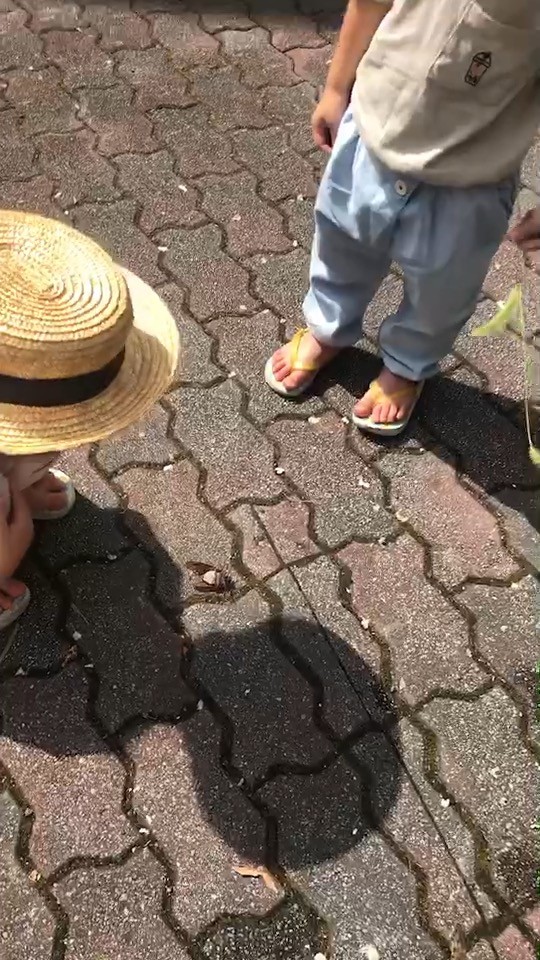「セミが死にそう。助けたいけど触れない。」何とか持って茂みに入れたそうです。