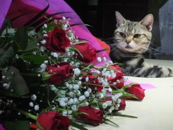お昼近くに前に住んでいる前田さんが、真っ赤な薔薇の花束を抱えて来てくれた。