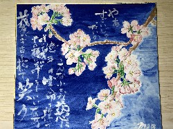 春に咲いた桜の花房は描けたが、背景も詩もどうして良いか悩んでいた。