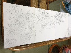 思い切って、群青と貝灰…を混ぜて、色を重ねました。