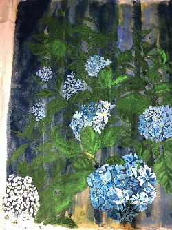 紫陽花を揺することも無く降る夜の雨の中を彼は歩いて帰ってきました。