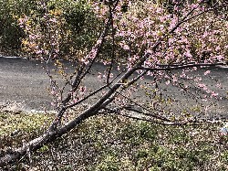 台風(颱 あかしま)で倒れたままの河津桜。