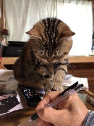 原稿用紙にちょいちょいと手を出すチャーちゃん。厚洋さんの文才が少し欲しい真愛です。