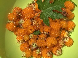 ばっちりオレンジ色の木イチゴの実を採りまくりました。