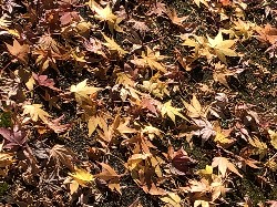 翌朝は、散った葉の上に、白い霜がうっすらと降りました。
