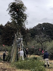 まず最初は10b近い竹の下枝を切り落とし、てっぺん近くに達磨をつける。