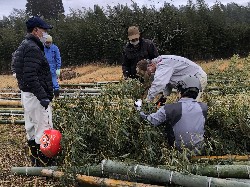 孟宗竹と雌竹を切り出して下の田んぼに運ぶ。