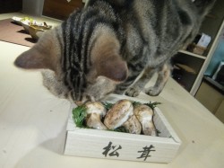大好きなお父んのために高〜い松茸を買ってきて“土瓶蒸し”も作っていました。黙っていそいそ作るお母んではありません。「におい松茸、味しめじ。」と言いながら、お父んにもちゃーちゃにも無理矢理嗅がせていました。