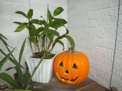 玄関のディスプレイは「ハロウィン」から「木枯らし」に変わりました。