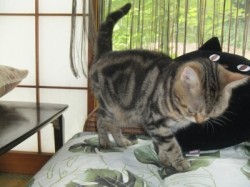 夏は暑いに決まっています。しかし、どこに行っても暑くて、ちゃーちゃんは涼しいところを探しまくっています。外にゃんこならば木陰の涼しいところでいれば地面も冷たく風も通るのですが、家にゃんこのちゃーちゃんは大変。